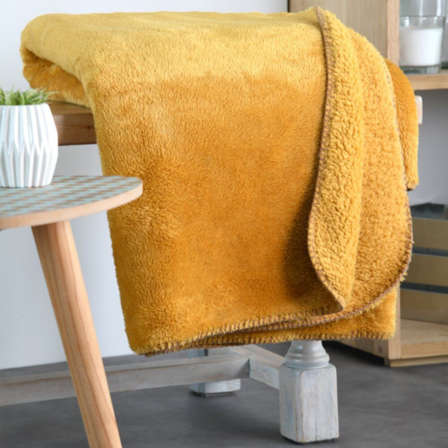 The CALIN throw, with its wool-like texture, is soft and cosy for optimal comfort. Its mustard colour adds a warm, on-trend touch to your home. Measuring 130 x 160 cm, it’s perfect for cosy moments on the sofa or in bed.