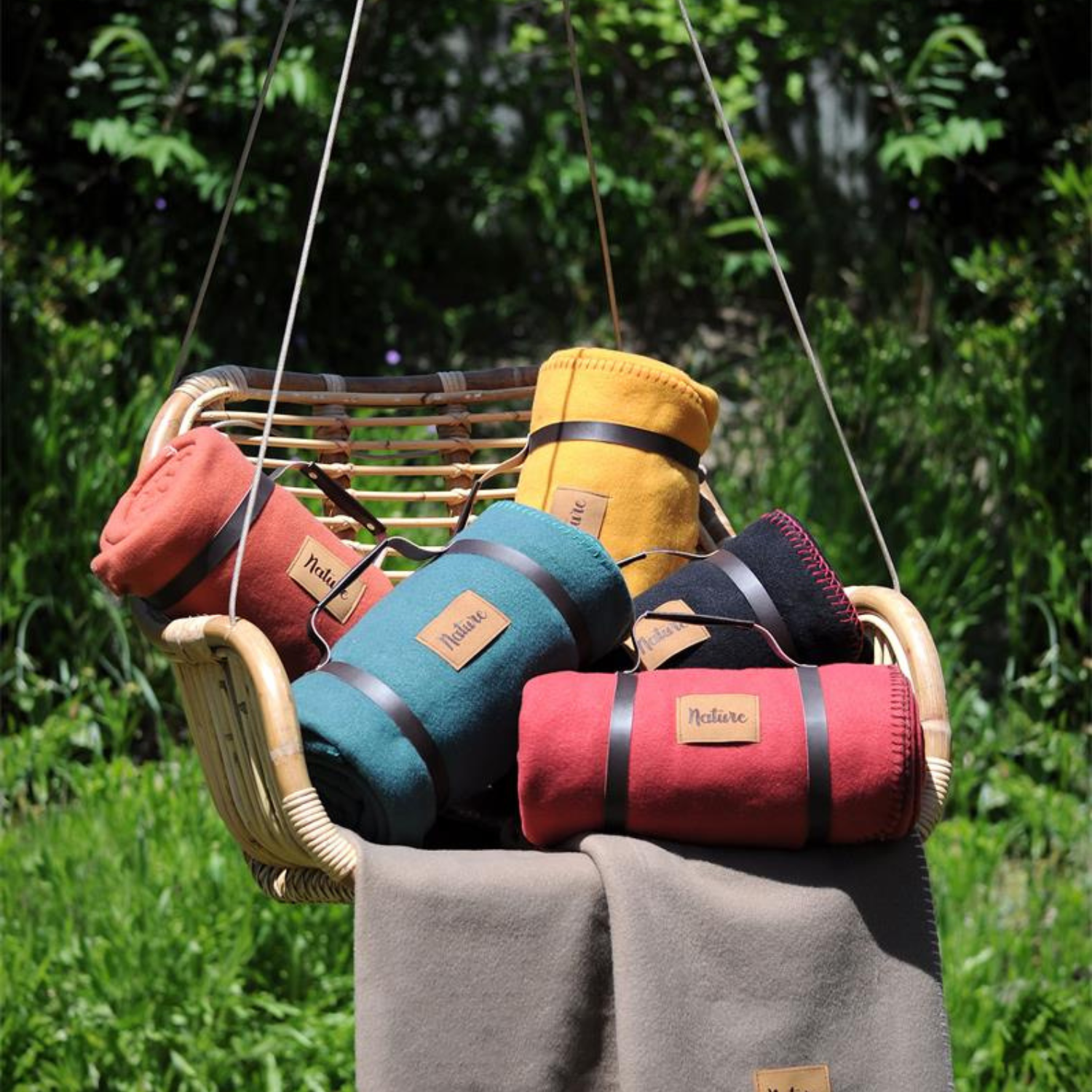 An emerald-coloured throw made from 100% polyester, soft and cosy, ideal for moments of comfort both at home and outdoors. Practical and easy to carry, it rolls up and stays in place thanks to its strap, making it perfect for travel, picnics or cosy moments. Measuring 130 x 150 cm, it provides a lovely blanket whilst remaining compact and practical for everyday use.