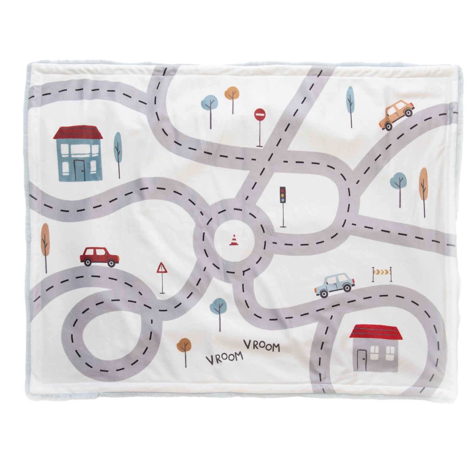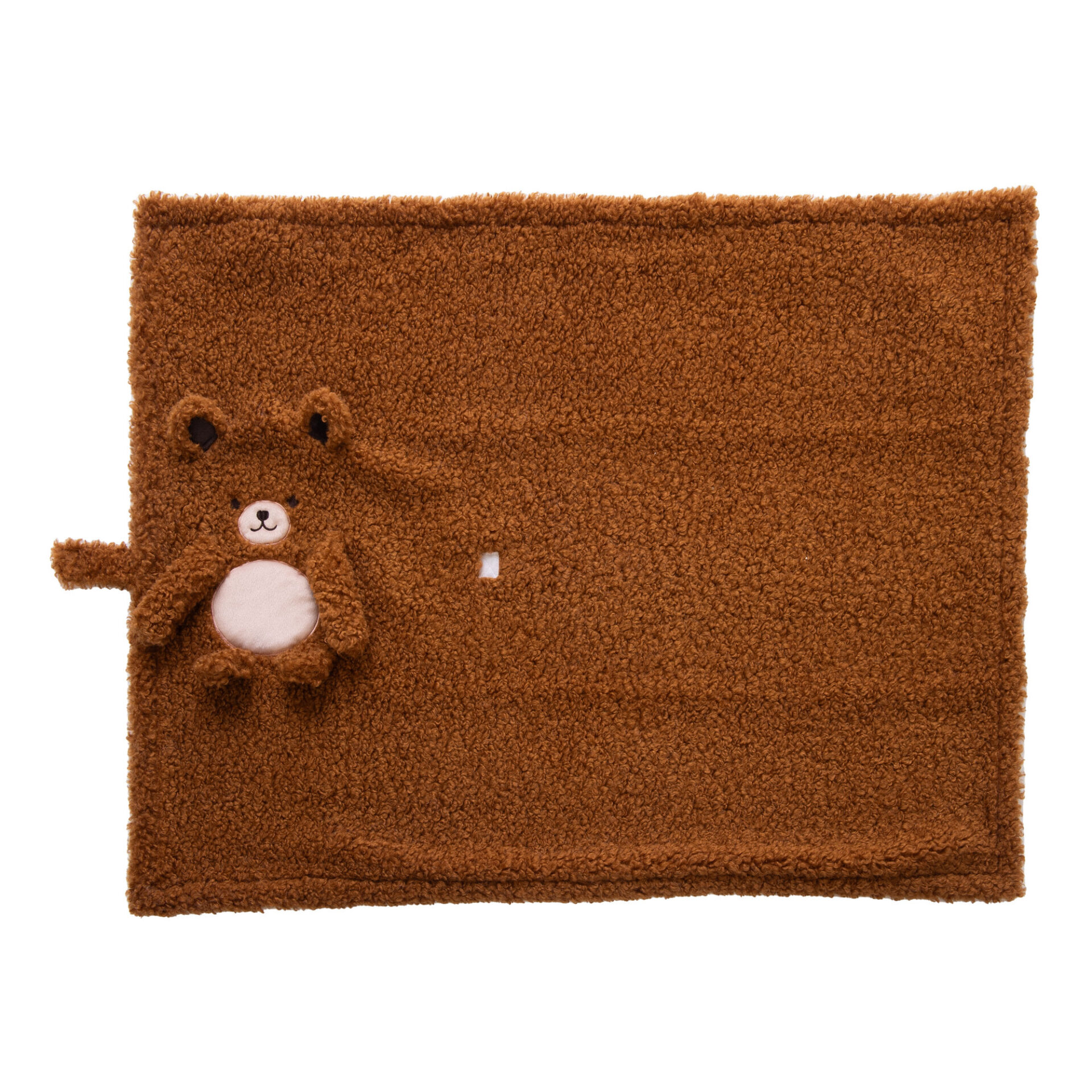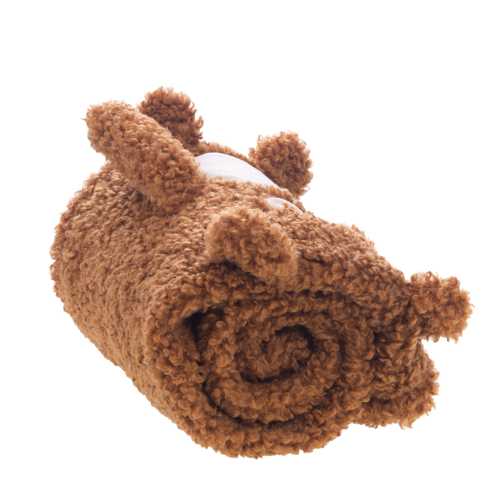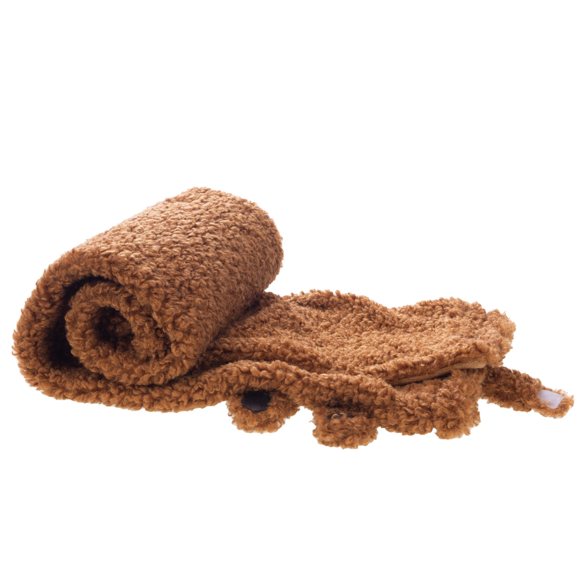 Plaid 100% Polyester 100x75cm Attache scratch pour l’enrouler Motif Ourson tissu effet bouclette marron