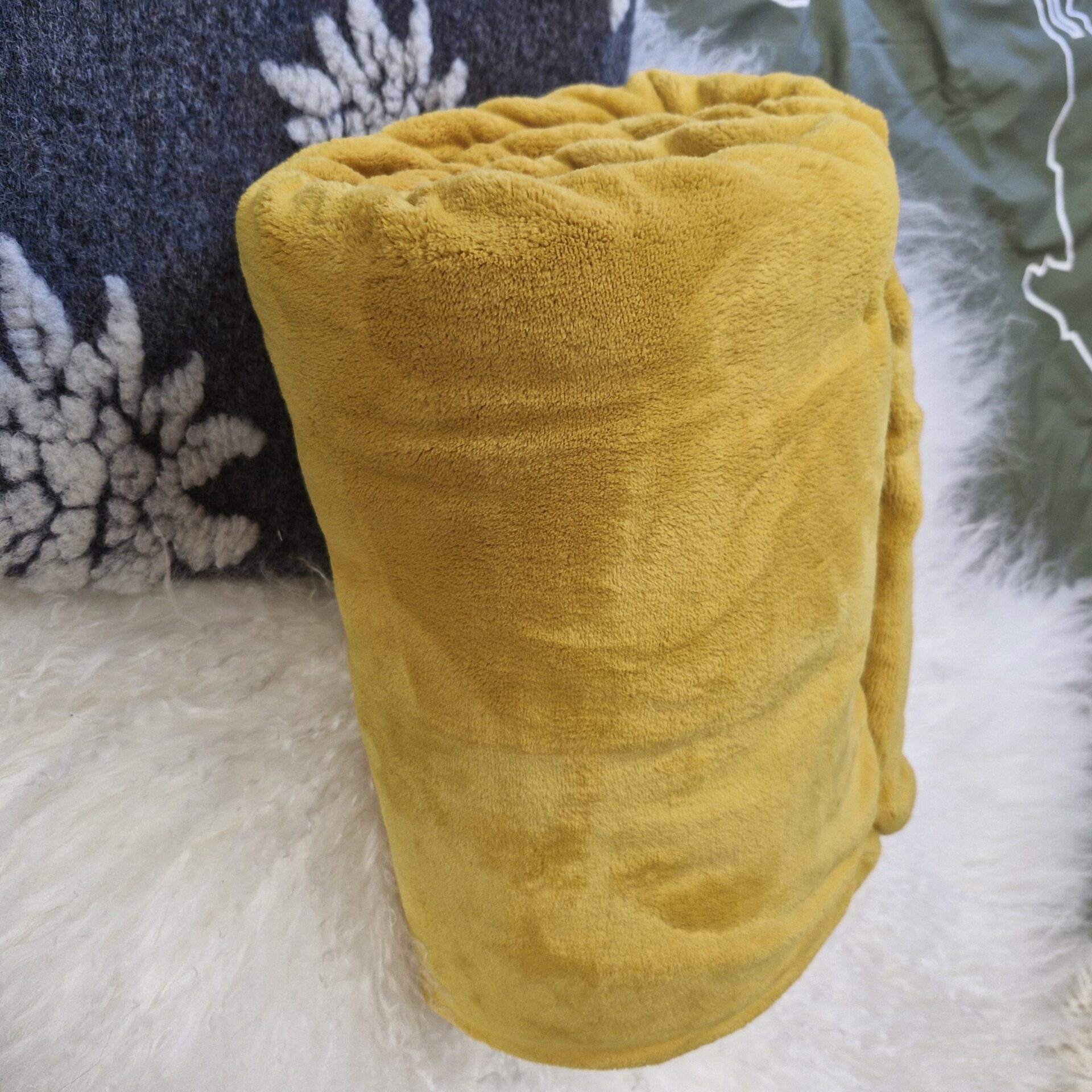 Wash at Honey-yellow fleece throw, 130×200 cm – soft, warm and lightweight. Ideal for keeping warm on chilly evenings, it adds a cosy and bright touch to your home. Easy to care for and perfect for the sofa or bed.30°C