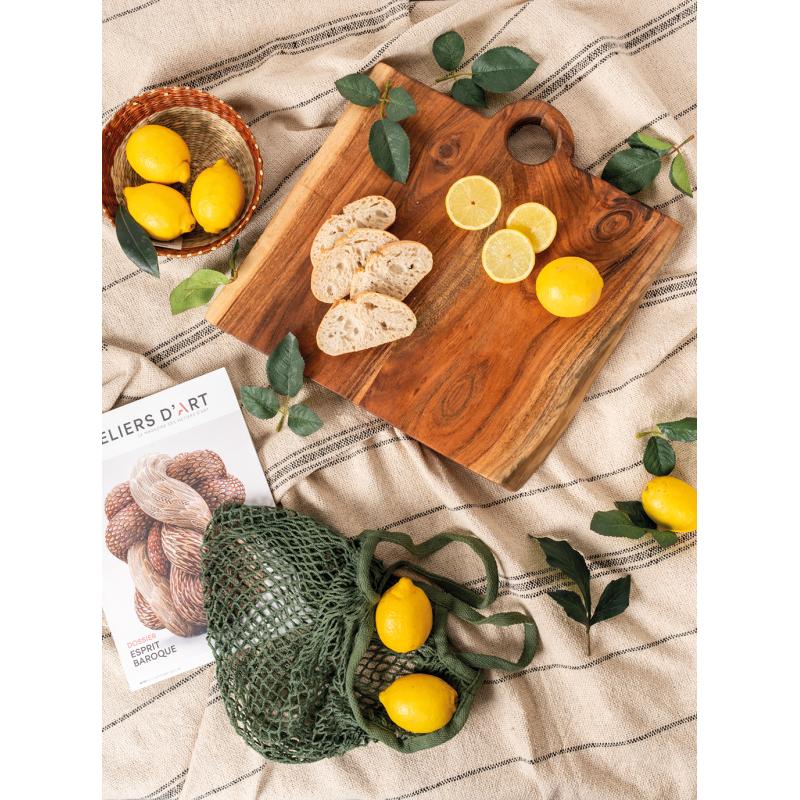 Planche à découper en acacia de 4 cm d’épaisseur avec finition huile. Idéale pour cuisiner ou servir avec élégance, robuste et durable pour une utilisation quotidienne.