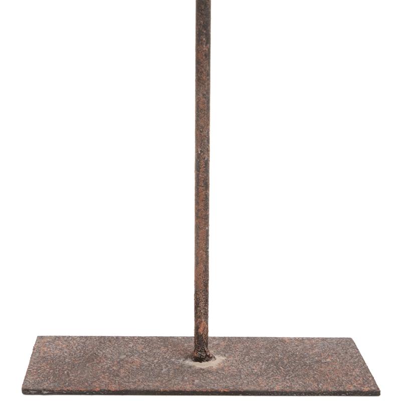 Fish in natural paulownia wood on aged metal stand.
