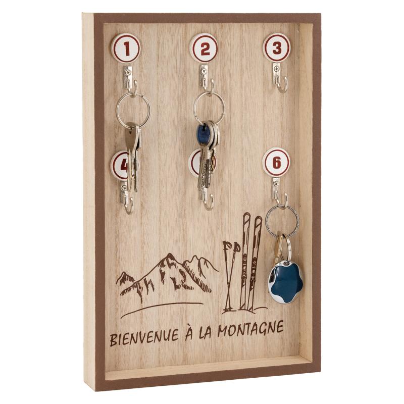 A charming wooden wall-mounted key holder, perfect for creating a warm, mountain-style atmosphere right from the entrance. Features the printed inscription ‘Welcome to the mountains’ for a touch of authenticity.