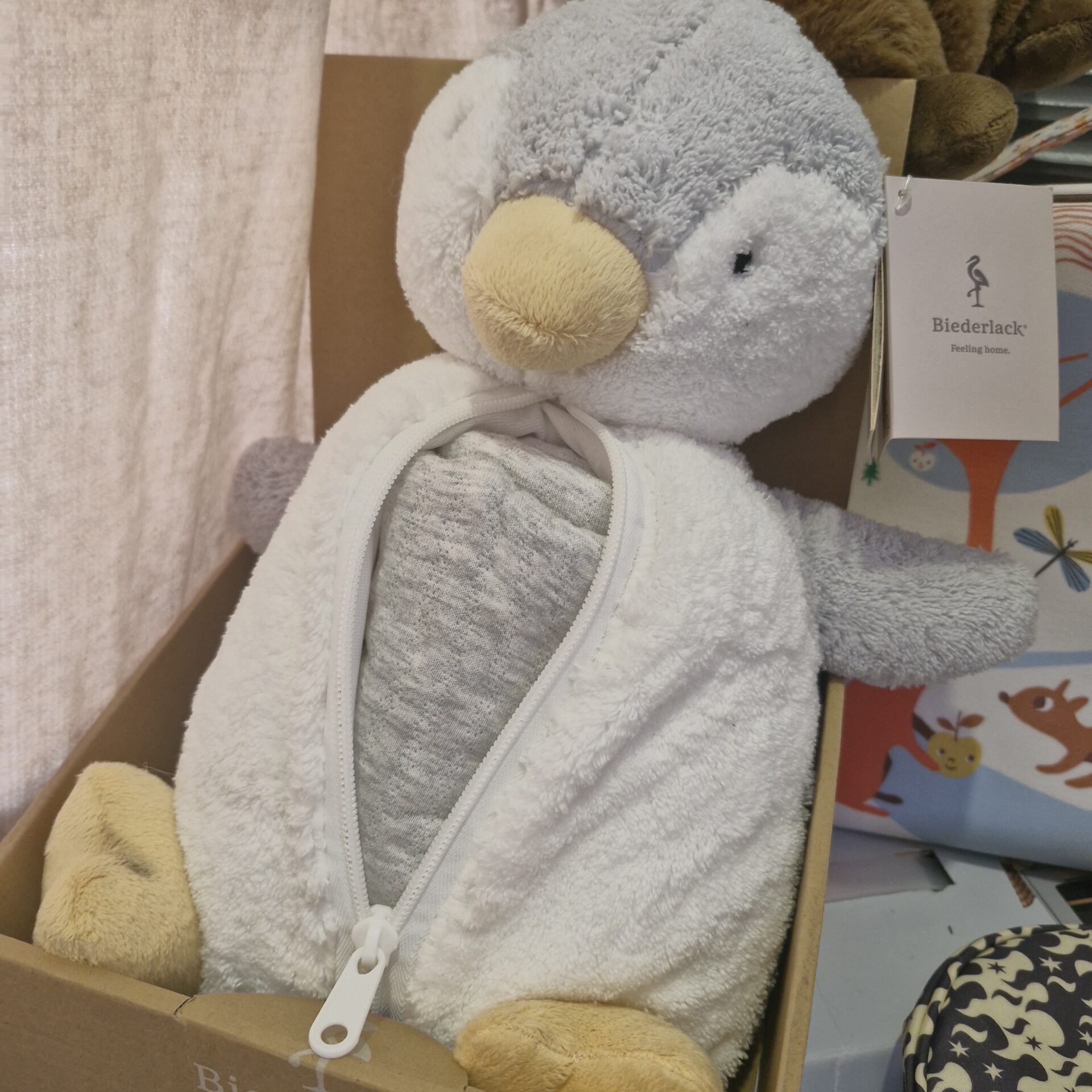 Voici Donni, le pingouin le plus tendre de la banquise ! Sous son bidon tout rond et tout doux, il cache un plaid bien chaud, parfait pour les moments cocooning, les histoires sous la couette ou les voyages en famille. Quand le plaid est rangé, il devient une peluche rigolote à emporter partout. Un vrai copain des petits explorateurs !