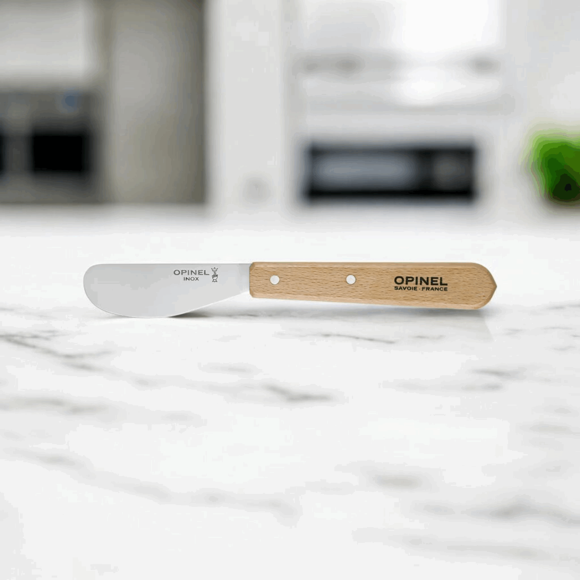 Tartineur de la marque Opinel Manche en bois de hêtre verni, lame spatule inox de 7cm Convient au lave vaisselle Long : 16,5cm