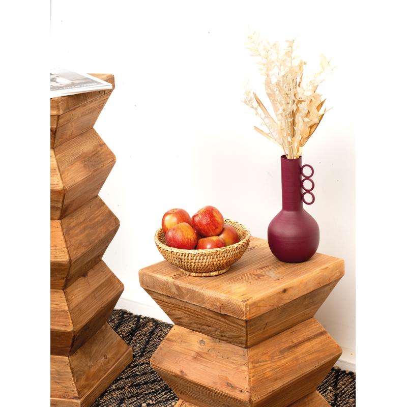 This blackcurrant-coloured metal vase has a deep tone and original silhouette, enhanced by its loop-shaped handles. A decorative object with a style that is modern, bold and warm, perfect for enhancing a contemporary or natural interior. Its warm colour brings character and uniqueness to your décor. A sculptural object even without floral arrangements.
