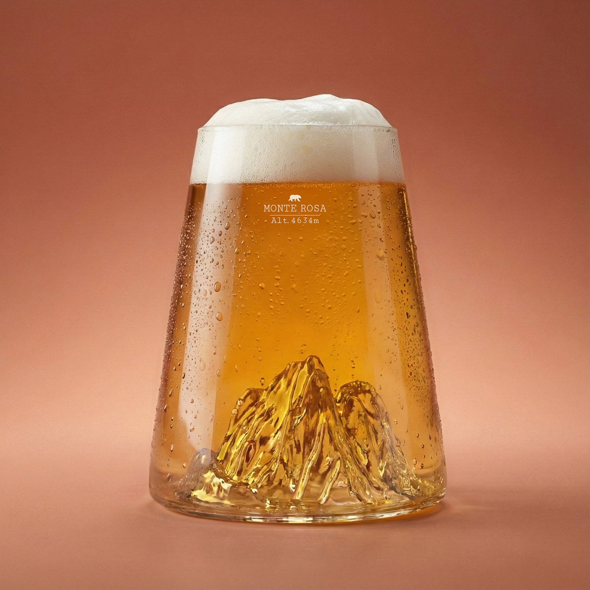 The second highest peak in the Alps at 4,634 metres, Monte Rosa (or Mont Rose) impresses with its imposing silhouette and numerous snow-capped peaks. This glass faithfully reproduces the ridges, glaciers and valleys of the massif, on the border between Switzerland and Italy.