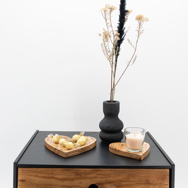 A decorative object with authentic charm, this mango wood trinket tray has a soft and symbolic heart shape. Made from natural material with unique grain, it has a smooth finish and warm colour for a discreet yet characterful presence. The ideal size for organising keys, jewellery, loose change or everyday accessories. A thoughtful gift idea for a housewarming, a heartfelt gesture or seasonal decoration.